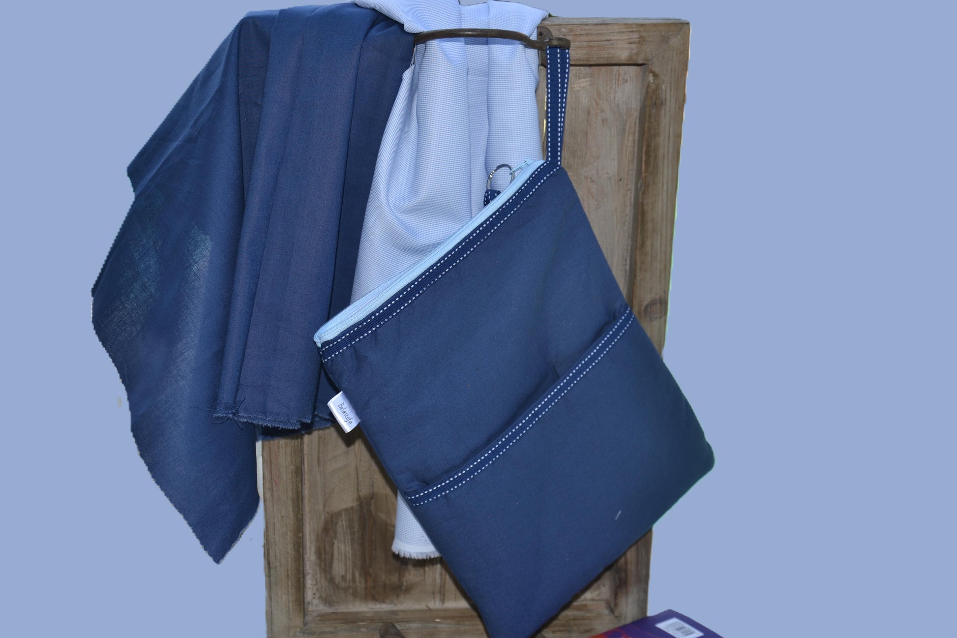 Cette pochette réalisée à partir d'un tissu élégant peut accueillir des livres ou une tablette de 10,4 pouces.