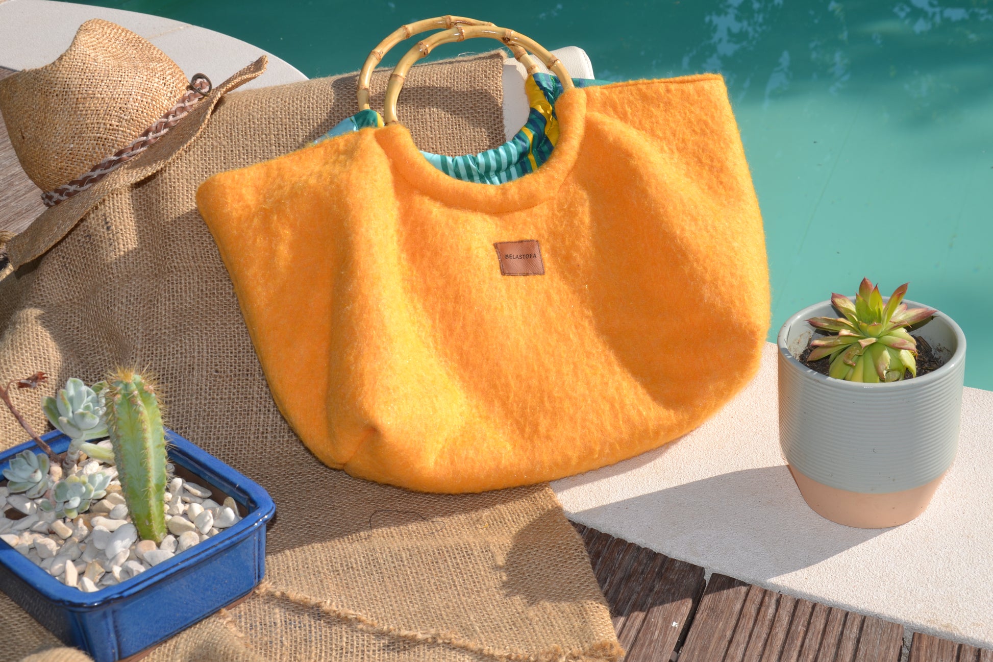 Mon cabas Tournesol fait main est conçu à partir d’un matériau recyclé (couverture en laine) qui lui assure douceur et élégance.